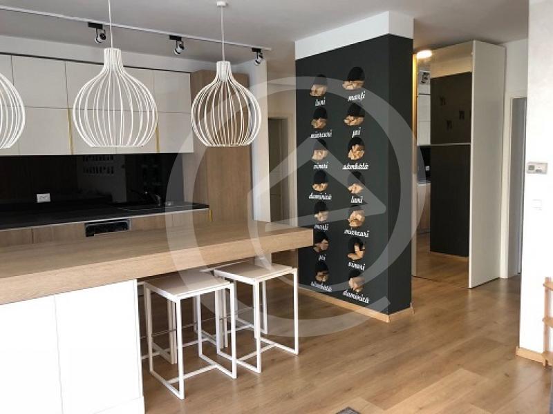 Imobilul se afla la etajul 1, de unde avem privilegiul de a vedea propriul loc de parcare. Mobilarea cat si utilarea apartamentului s-a facut sub indrumarea designer-ului, adaptandu-se la nevoile noului chirias avand multiple spatii de depozitare cat si un living generos open-space cu loc de luat masa si bar, doua dormitoare si o baie. Dotarile sunt peste medie, aici regasim masina de spalat vase, cuptor cu plita si televizoare marca Samsung.