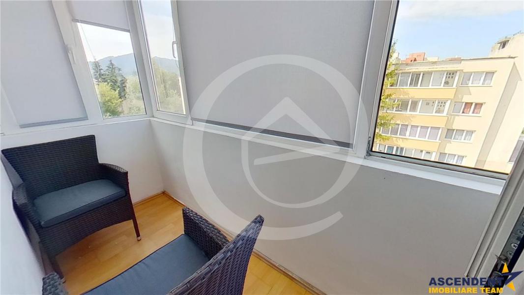 Din balconul de 6 mp puteti admira atat brazii din fata blocului cat si muntii.