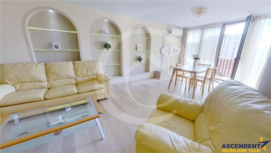 Proprietatea se desfasoara pe o structura decomandata, cu o suprafata utila de 92 mp, oferind astfel un spatiu generos pentru viitorul chirias. Mobilierul si electrocasnicele de cea mai inalta calitate, sunt un plus adus apartamentului de catre proprietari, pentru a crea un mediu placut noilor chiriasi.
