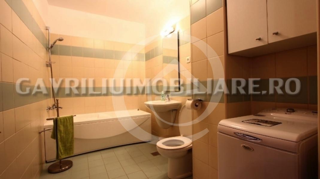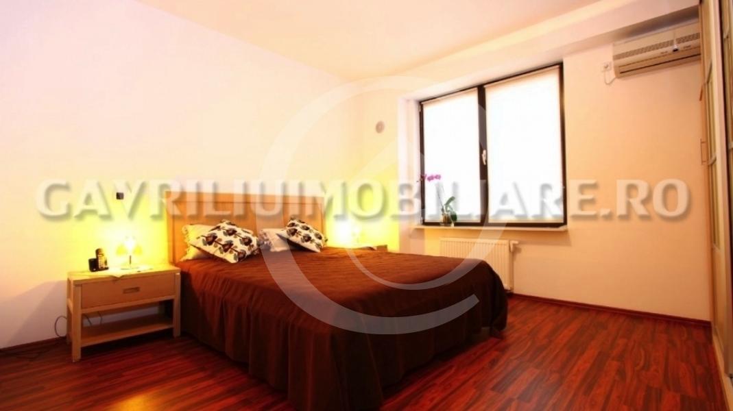In dormitorul principal se regasesc: pat dublu matrimonial cu saltea ortopedica si noptiere si dulap de haine foarte spatios. Camera de baie aferenta este dotata cu cada de baie si bideu.