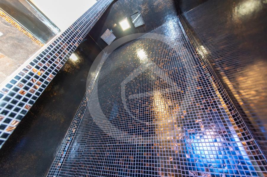 baia este in stil retro, cu dus, care coboara din tavan, cu termostat, pentru incalzirea apei, avem elementele sanitare, ale cosmicei bai, marca Royal, peretii sunt decorati cu lavabila tip stucco, venetian, ceea ce permite stergerea peretelui fara a deterioara culoarea, sistemele de iuminare tip Lohus, semineu etc.