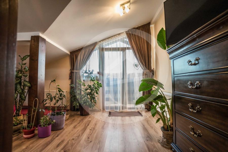 In aceasta compozitie open space exista locuri pentru orice: pentru gatit, pentru odihna, pentru lectura, pentru servit cafeaua sau cina, chiar si pentru o gura de oxigen pe terasa deschisa. Un camin fara flori este incomplet, de aceea va punem la dispozitie un ambient relaxant, cu tuseuri armonioase si tonuri calde, unde plantele te invita la incantarea ochiului in mijlocul acestei oaze de sanatate si prosperitate. Cu o structura mansardica intinsa pe o suprafata utila de 69 mp si o imbinare potrivita intre linia de lemn a dormitorului si lumina naturala oferita din abundenta de cele 5 geamuri Velux, acest spatiu versatil cu mobilier minimalist iti ofera confortul si intimitatea mult cautate. Este un spatiu de vis, perfect pentru dimineti de duminica lungi, cu o carte buna in brate si o cana de cafea cu lapte alaturi:) Pozitionat intr-un ansamblu rezidential, ridicat in anul 2012, va invit sa parcurgeti linistea si eleganta acestui cartier.