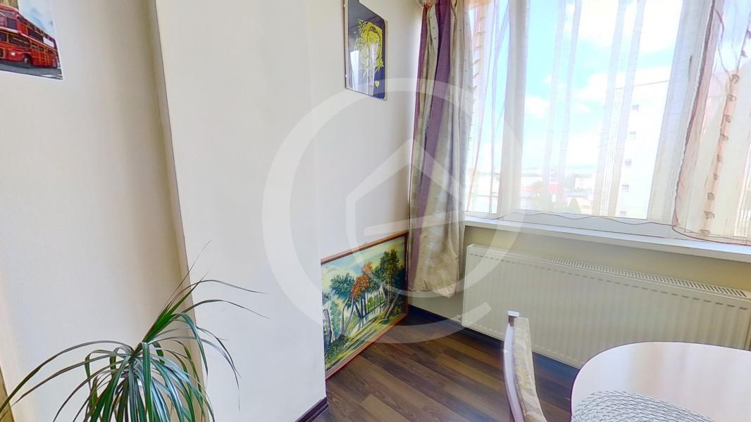 Proprietatea este situata la etajul 7in bloc de 8 nivele si se desfasoara pe o compozitie cu: camera, bucatarie, baie si balcon, cu acces tip bar din balcon in bucatarie.