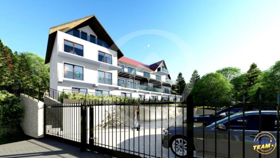 Designul deosebit al cladirii creeaza impresia unui hotel alpin, cu ample terase inchise cu sticla, zone vitrate largi si priveliste superba spre Tara Barsei.