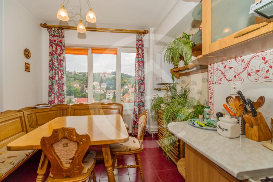 Zona de zi, pe primul nivel, ne rasfata cu un special living, ce ne incanta cu vederea panoramica spre Centrul Istoric al Brasovului si vecintaile acestuia, o primitoare si luminoasa bucatarie, baie si terasa, inchisa, ce incununeaza frumoasa pozitionare.