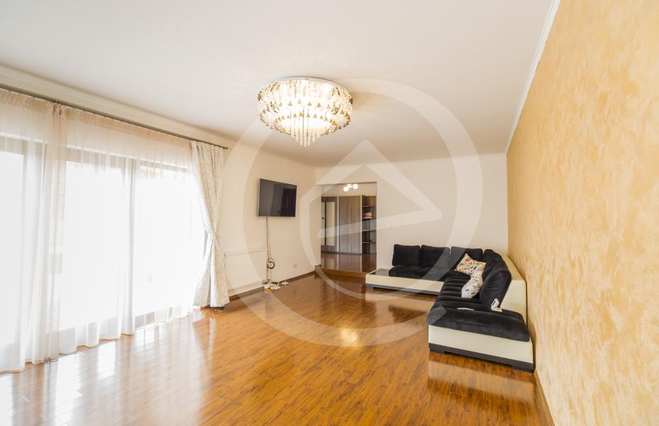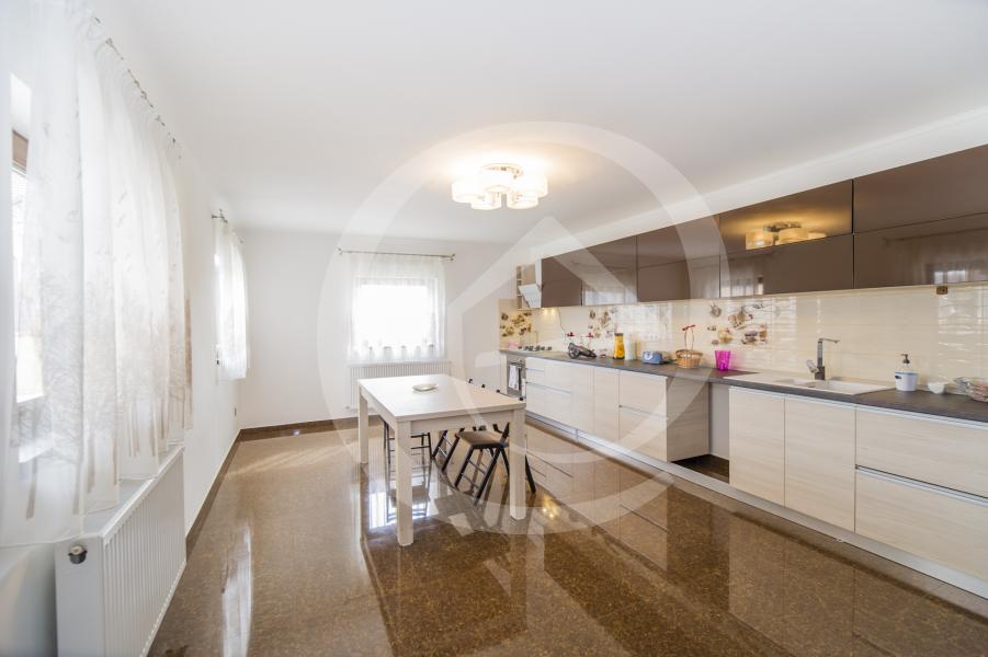 Proprietea este dispusa pe doua nivele si se infatiseaza cu un design deosebit al incaperilor, unde la parter remarcam un living de 31 mp, cu iesire pe o terasa splendida, bucatarie de 28 mp cu camara, baie si un hol de unde scara interioara ne poarta spre etaj unde ne intampina un hol generos, baie cu jacuzzi, trei dormitoare foarte spatioase, din care cel matrimionial cu baie proprie.