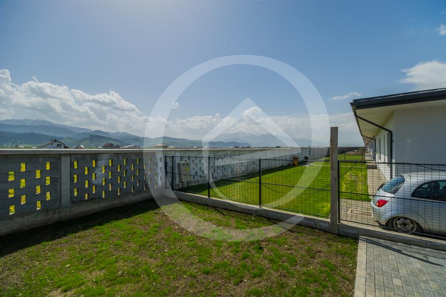 Situata intr-o zona pitoreasca, din Brasov, Cristian, cu o priveliste de vis asupra muntilor, proprietatea se desfasoara ergonomic, pe un singur nivel,cu o compozitie pe: doua dormitoare, doua bai, incapere de depozitare, bucatarie care poate fi atat inchisa cat si deschisa, in armonie cu livingroom-ul, completat de teresa spatioasa si spatiile auxiliare.