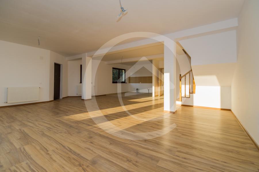 Proprietatea dispune la parter de un living generos cu bucatarie open-space, dressing spatios, camera tehnica, baie, iar scara interioara ne poarta catre etaj unde ne intampina trei dormitoare spatioase si calduroase, deservite de o baie generoasa.