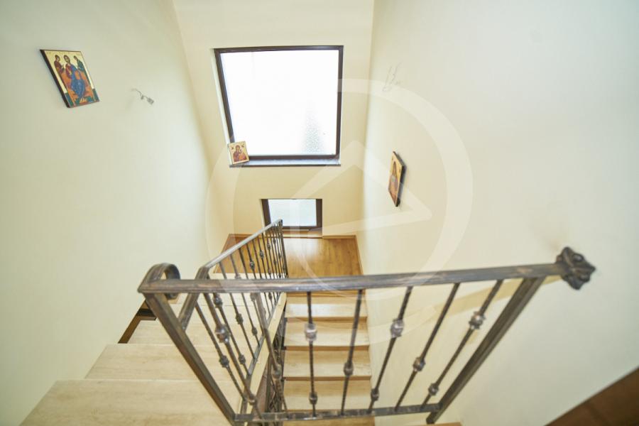 Una dintre notele elegante ale proprietatii este data de amprenta investitionala, regasind-o atat la parter cat si la etaj in amplasarea marmurei si travertinului alcatuind un ambient cozy si in acelasi timp distins.