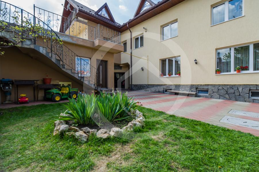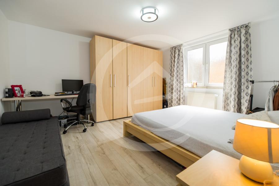 Imobilul se infatiseaza astfel: un apartament cu intrare separata, avand o camera spatioasa, bucatarie mobilata si utilata, baie si hol, si casa principala, cu living open space cu bucatarie, patru dormitoare, dintre care unul matrimonial cu baie proprie, grup sanitar distinct cu geamuri pentru aerisire si spatii auxiliare. Subsolul este constituit din spatii tehnice si spatii pentru depozitare.