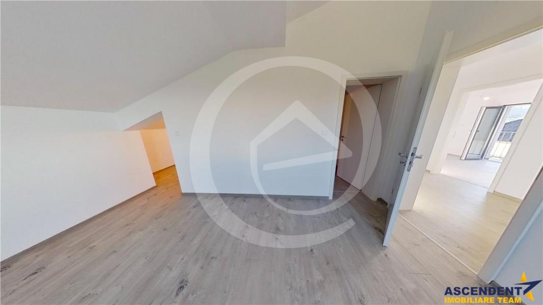 - la mansarda: dormitor cu balcon deschis, vedere laterala, dormitor matrimonial cu minidressing separat si baie proprie cu cada; deasemnea, aici regasim un spatiu alaturat baii care poate fi transformat intr o sala de relaxare, spatiu birou cu lumina naturala si lucarna Velux, beneficiul fiind furnizarea de 2,5 ori mai multa lumina decat in cazul unei suprafete vitrate normal si in plus o a doua baie cu cabina de dus