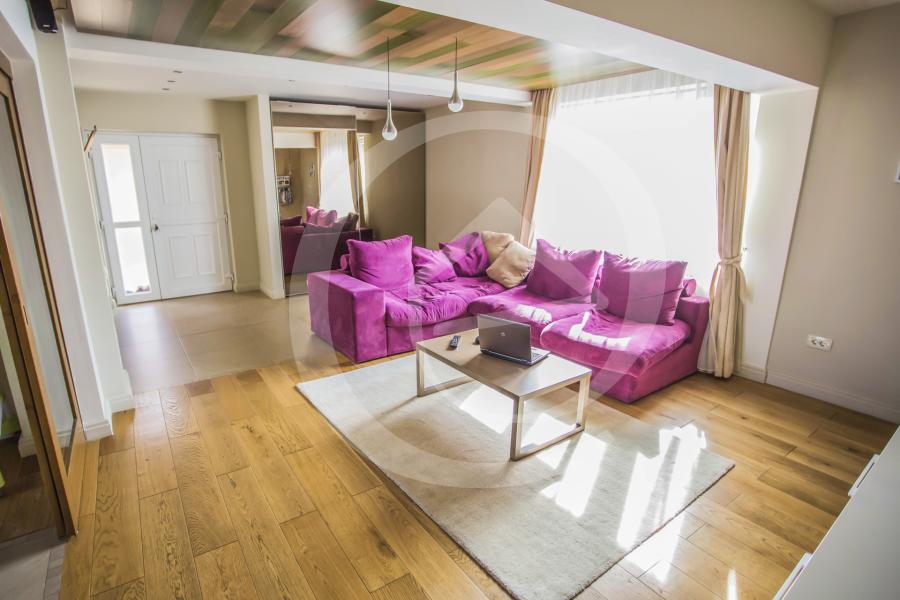 propune spre vanzare o REPREZENTARE EXCLUSIVA materializata printr- o vila eleganta, situata in zona centrala, la 5 minute de Centrul Vechi, cu un design deosebit la nivel de arhitectura a cladirii si a curtii.